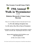 2) a 5K walk on May 25th at 10am in Westminster