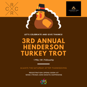 Keep your eyes on the pies and join us for the 3rd Annual Henderson Turkey Trot 5K & 1 Mile Fun Run!