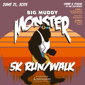 It's that time again! The 2025 Big Muddy Monster 5k Walk/Run in downtown Murphysboro, IL ! Pre-registration by June 6th to guarantee a t-shirt! Online registration is open till the morning of the race on June 21nd. Packet pick up at the Old Depot building 1701 Walnut St. near start line in Murphysboro starting at 7am the day of the race. 8:00am Run/Walk begins. All proceeds benefit the Old Depot Restoration project to renovate as a community welcome center!